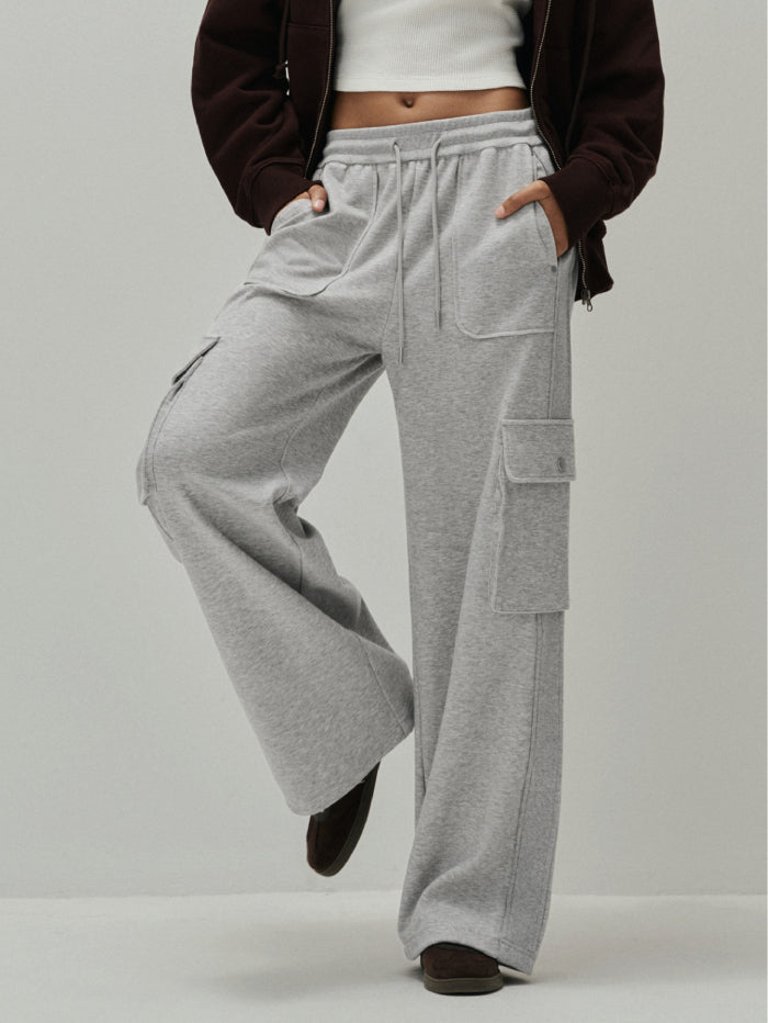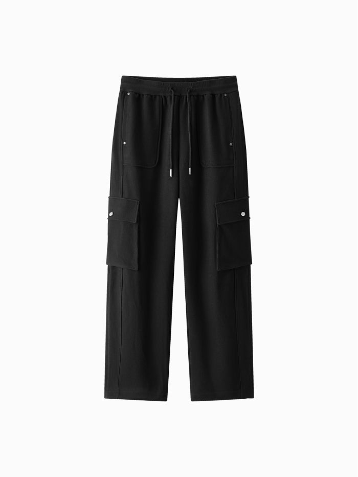 Casual sweatpants designed for comfort and functionality, featuring a relaxed fit with an elastic waistband and adjustable drawstring. Detailed with multiple patch pockets, including side cargo pockets, making them perfect for everyday wear.