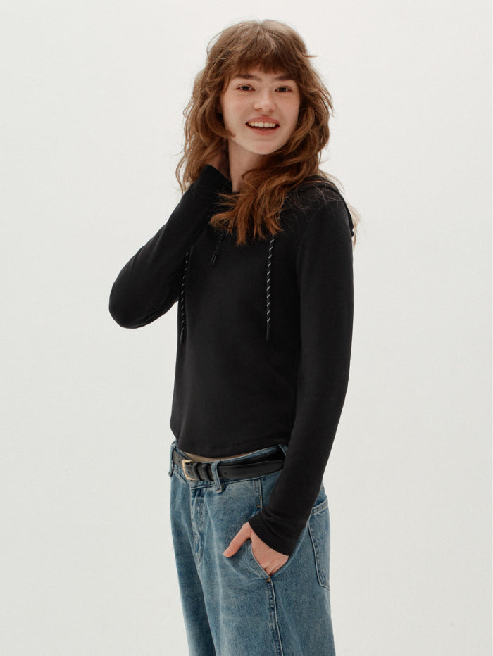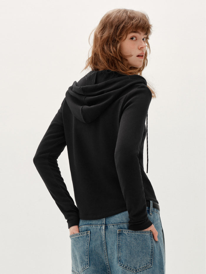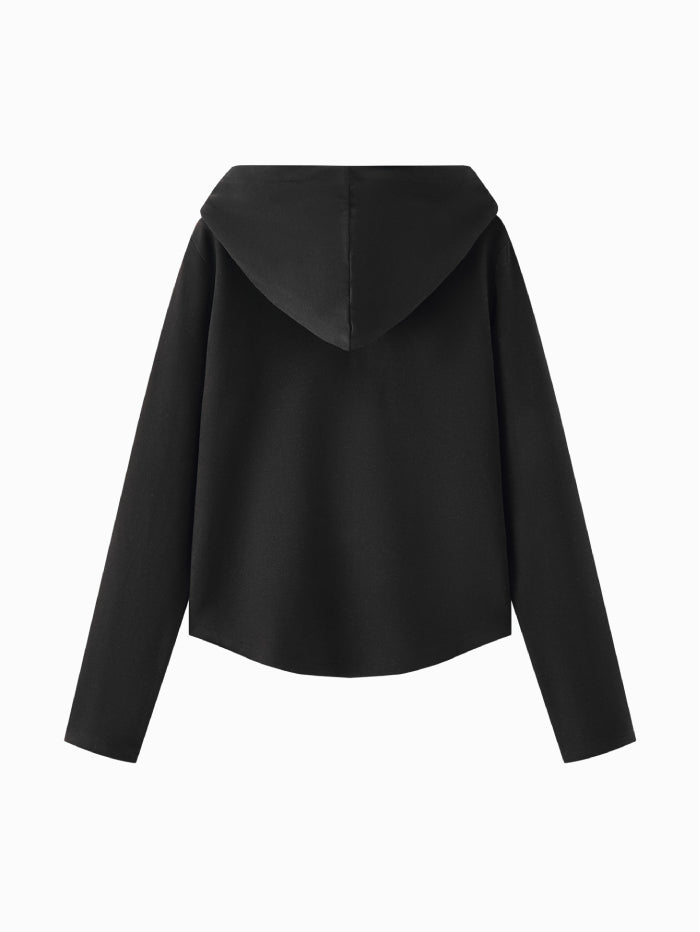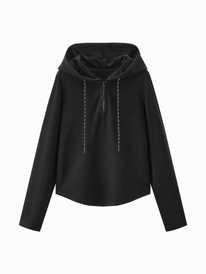 A sleek hoodie featuring a half zip design and adjustable drawstrings. The clean silhouette and practical details make it a comfortable and versatile piece for everyday wear.