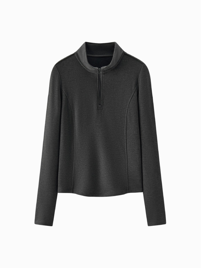 A versatile pullover featuring a half zip front and a stand collar for a modern sporty touch. Designed with a streamlined silhouette and soft fabric for comfort in everyday wear.