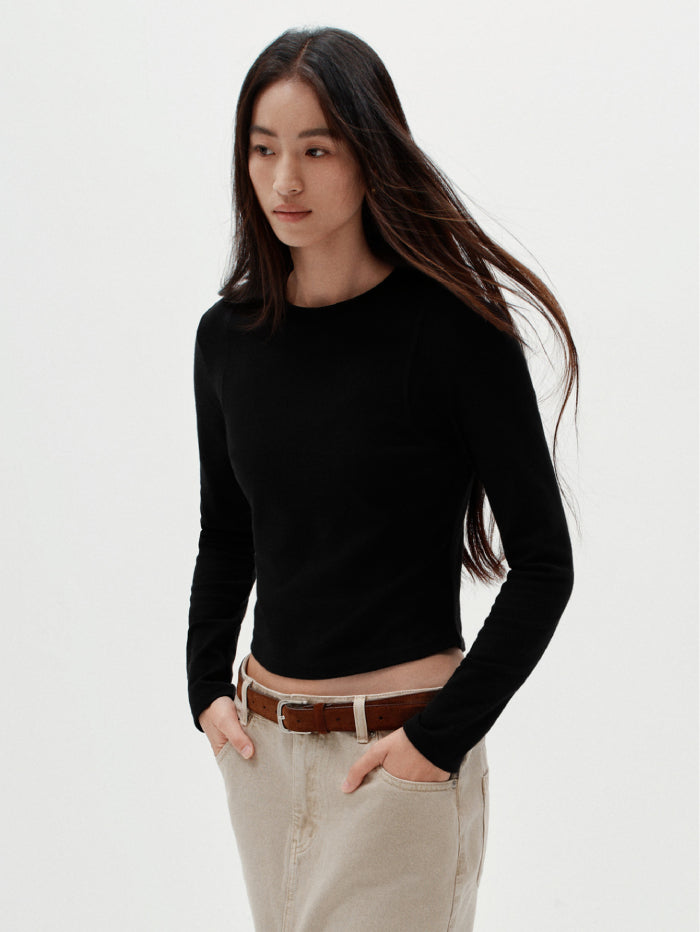 A simple and versatile long sleeve T-Shirt designed with a clean crew neckline. Crafted from soft fabric for everyday comfort and easy layering.