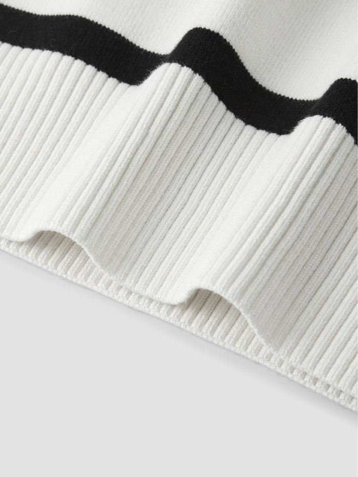 A knitted sweater with a crew neckline, featuring a timeless striped pattern. Designed for comfort and easy layering, making it a versatile everyday piece.