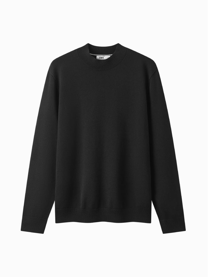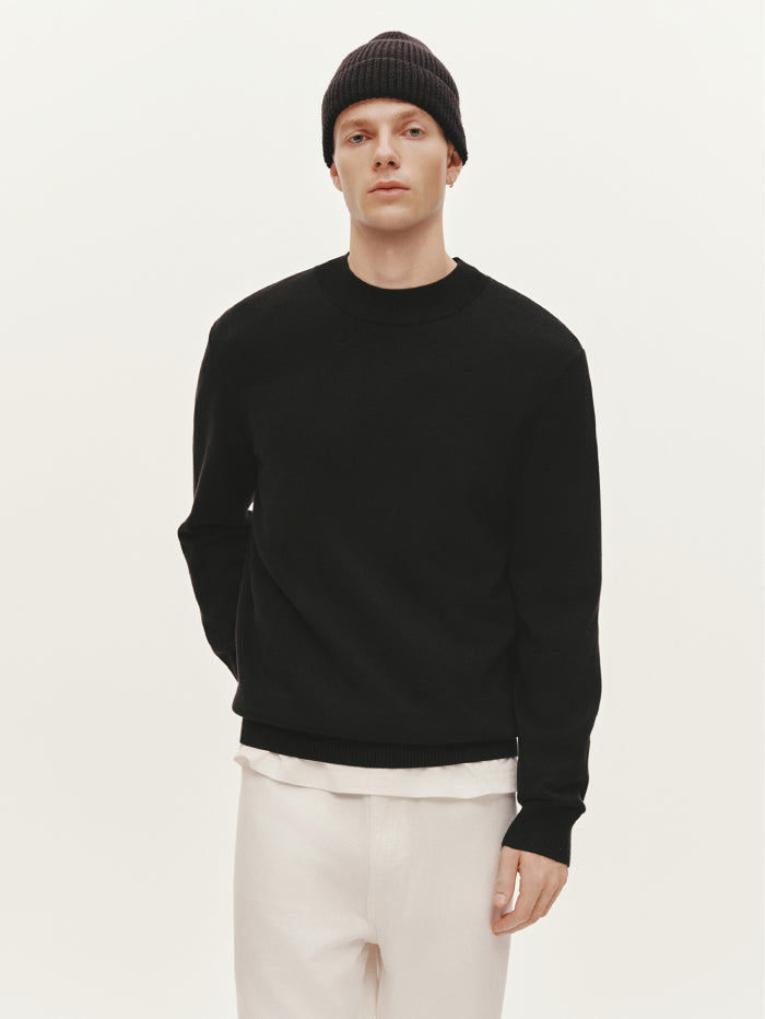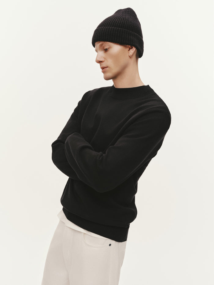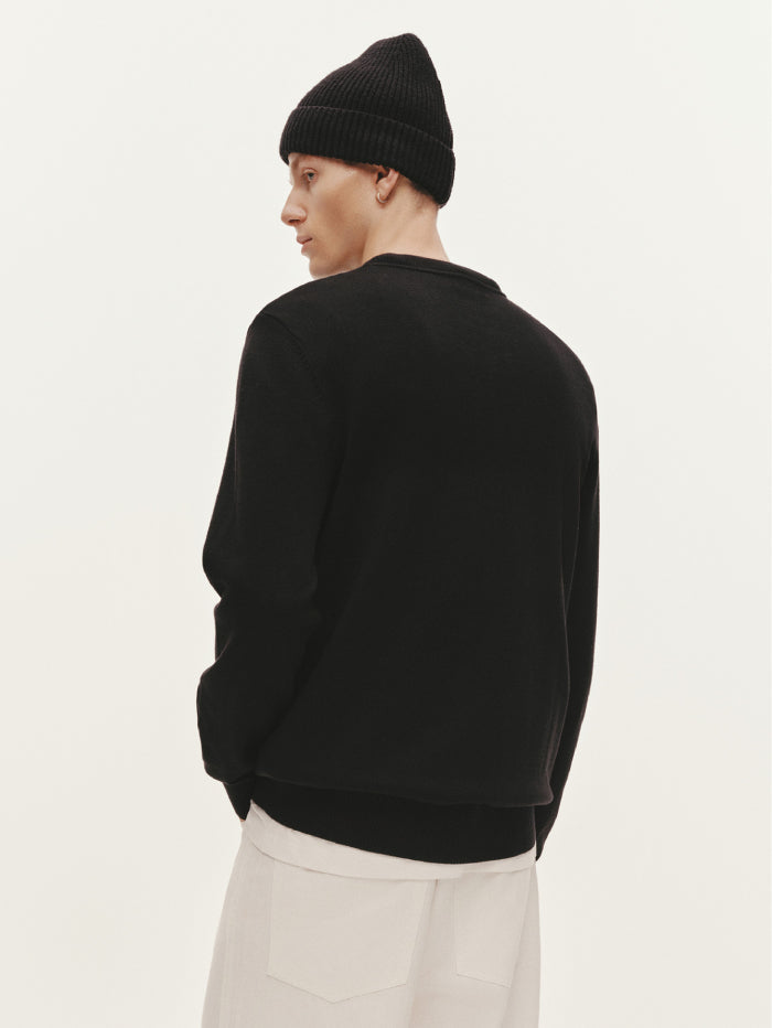 A simple knitted sweater with a crew neckline and ribbed edges. Soft and versatile, perfect for layering or wearing on its own for a clean look.