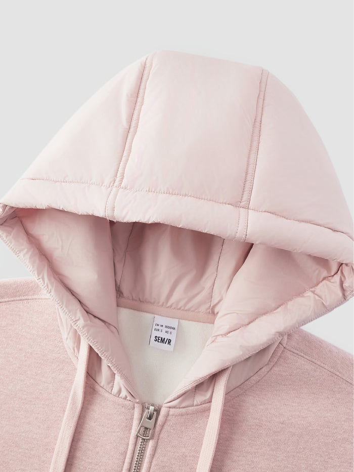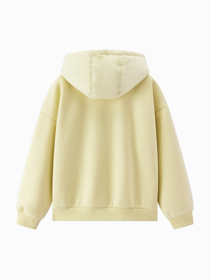Material: Fabric: Surface layer: 56.0% Cotton 44.0% Polyester Base layer: 94.7% Polyester 5.3% Spandex Hood facing/Hood lining: 100% Polyester Stuffing: 100% Polyester Rib fabric: 96.7% Cotton 3.3% Spandex