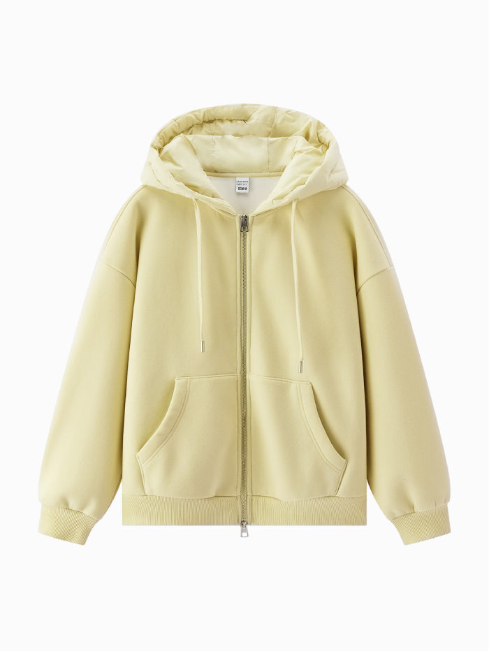 A casual hoodie with a front zipper, adjustable drawstring hood, and kangaroo pockets. Designed with ribbed cuffs and hem for a comfortable everyday fit.