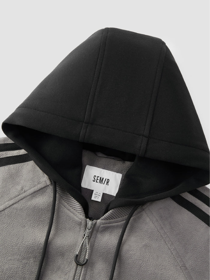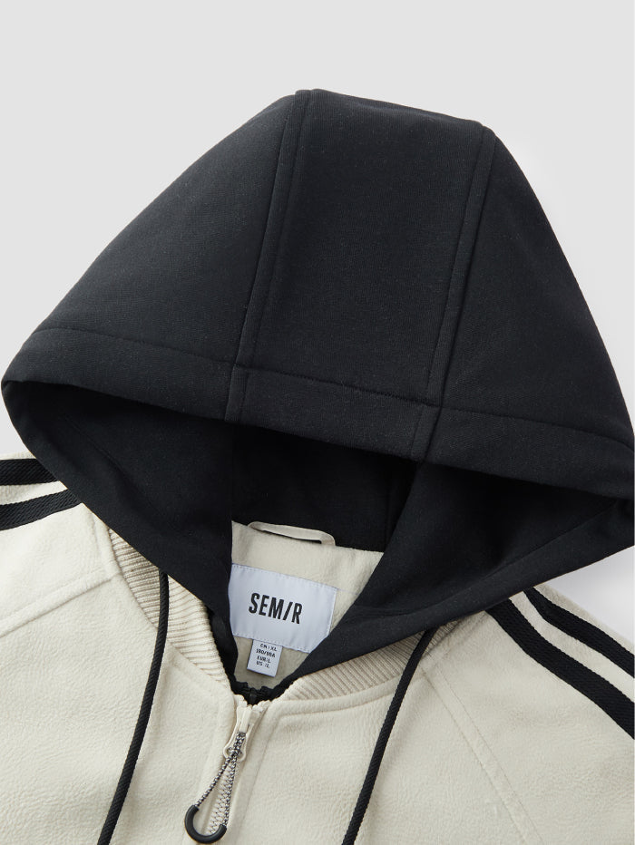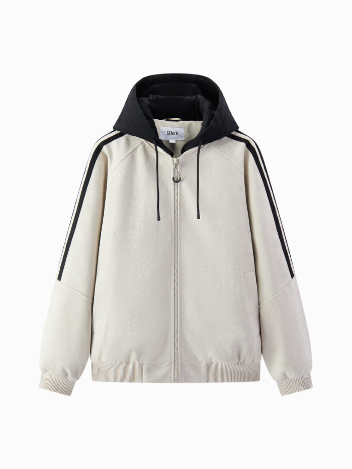 A casual hoodie featuring a full zip closure, adjustable hood, and ribbed cuffs and hem. Enhanced with sporty stripes along the sleeves for a dynamic look.