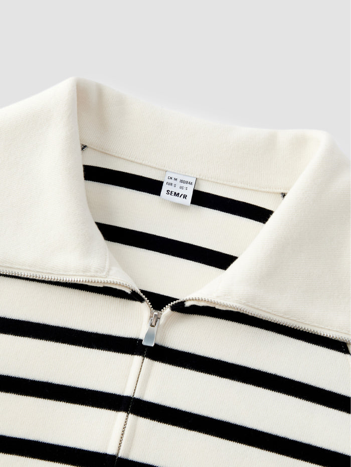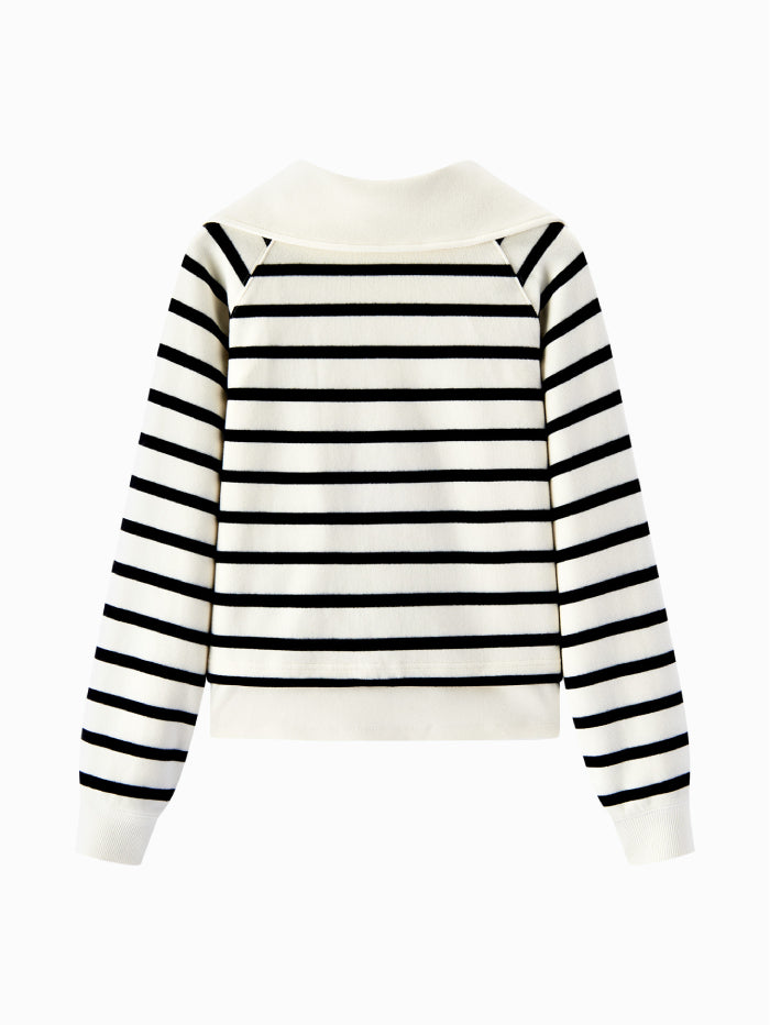 A stylish sweatshirt featuring bold stripes and a wide collar with half zip detail, complemented by an inner tank for a layered look. Finished with long sleeves and a comfortable fit, perfect for versatile casual outfits.