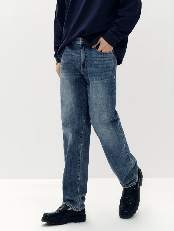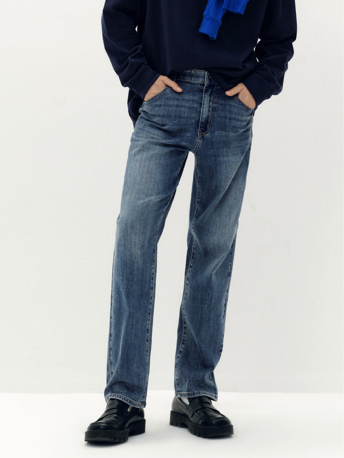 Men's Regular Fit Denim Pants with Washed Finish