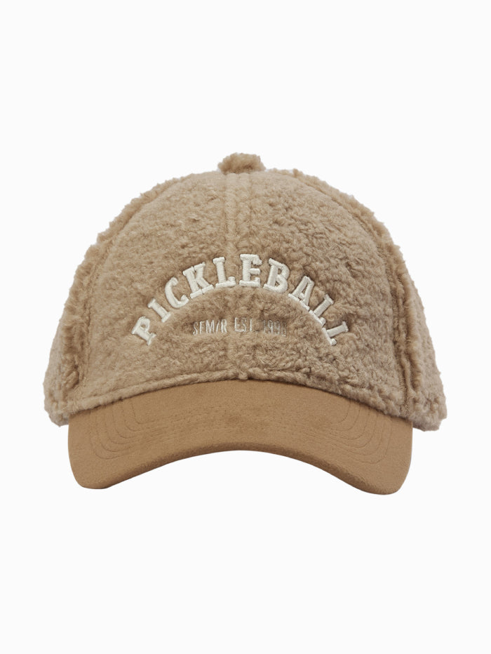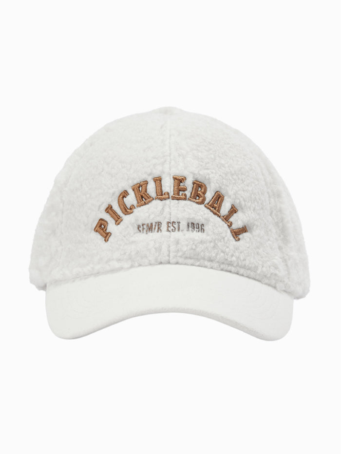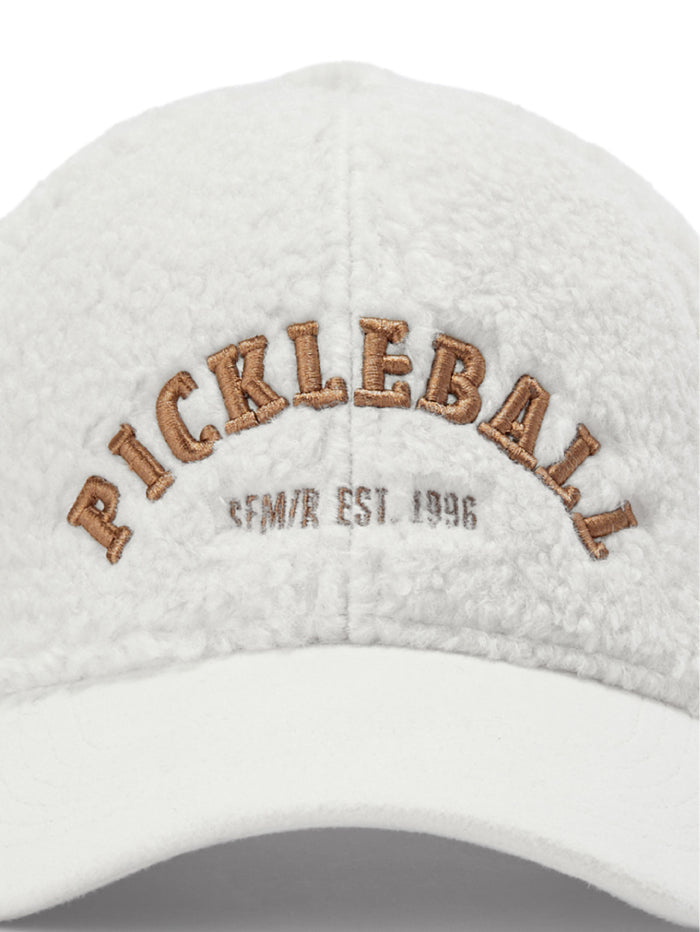 A casual baseball cap crafted from soft fleece fabric, designed with embroidered front lettering for a sporty look. Features a curved brim and an adjustable back strap for a comfortable and secure fit. Perfect for everyday wear and outdoor activities.