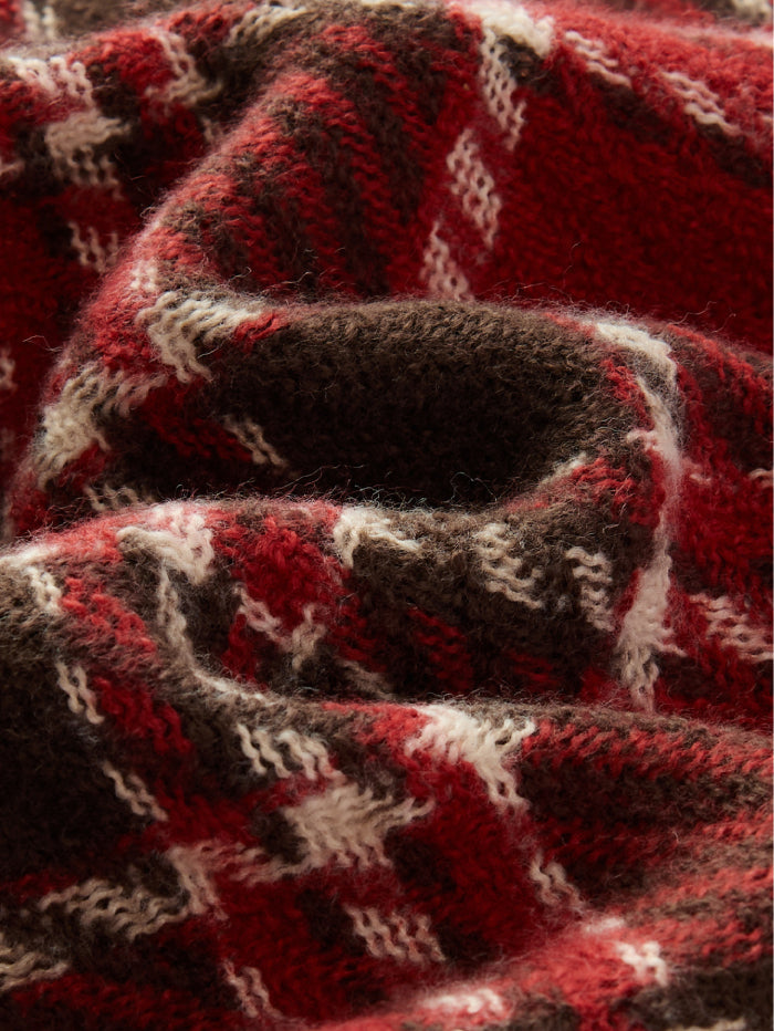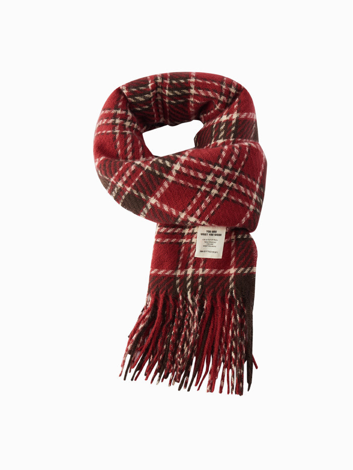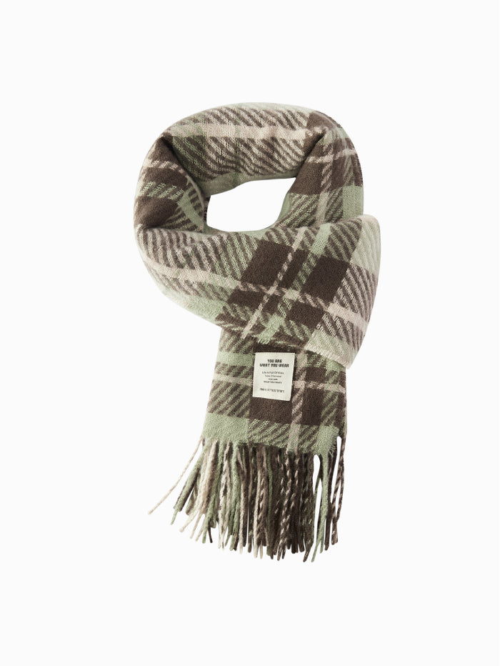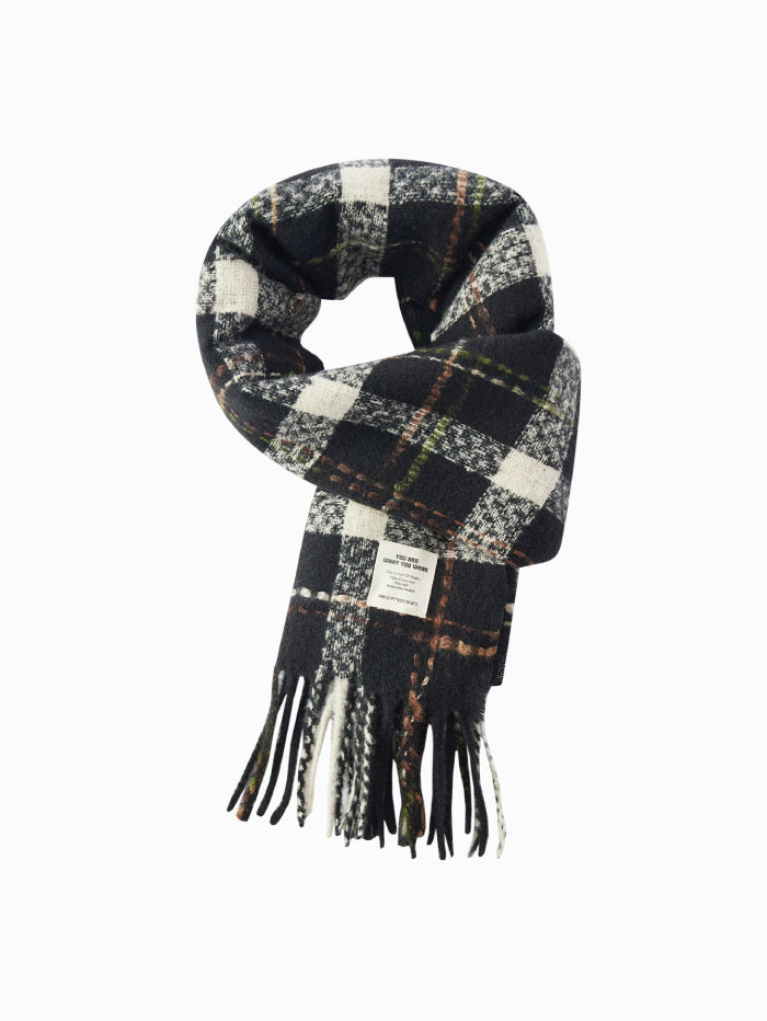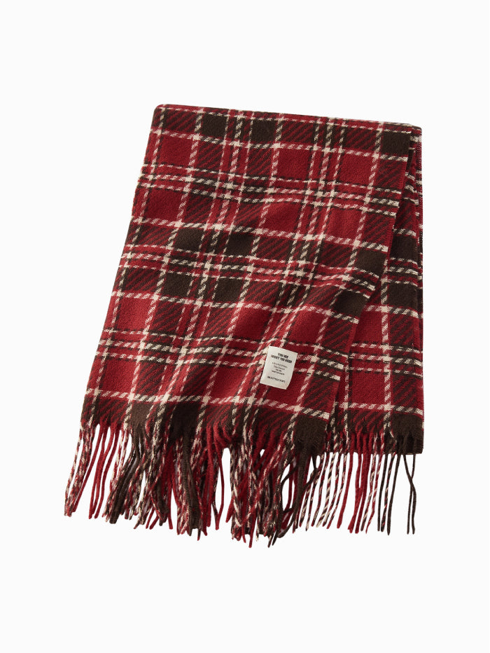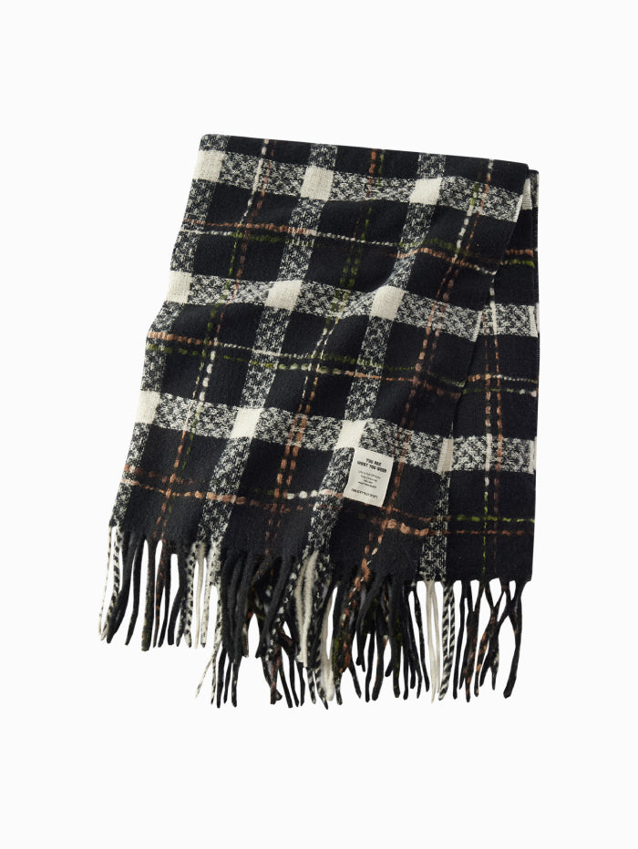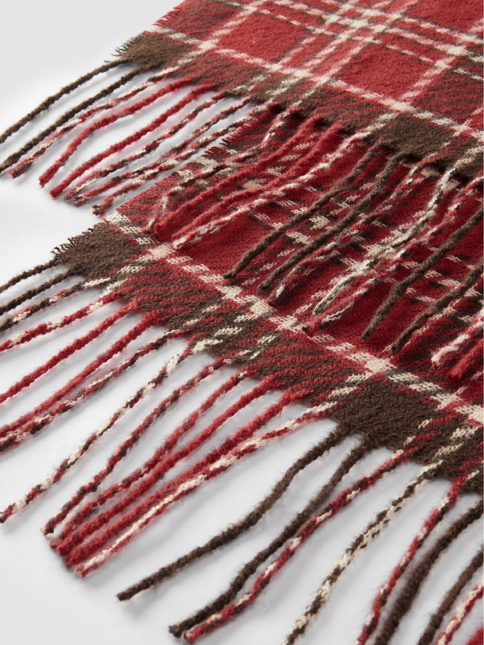 A soft scarf designed with a classic checked pattern and fringed edges. Perfect for adding warmth and a timeless touch to your cold weather looks.