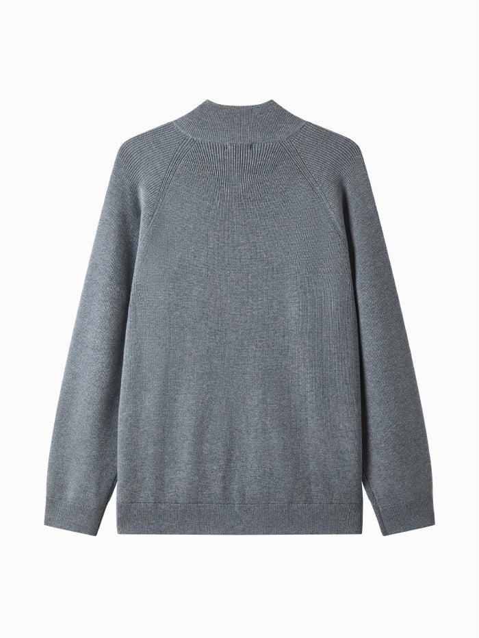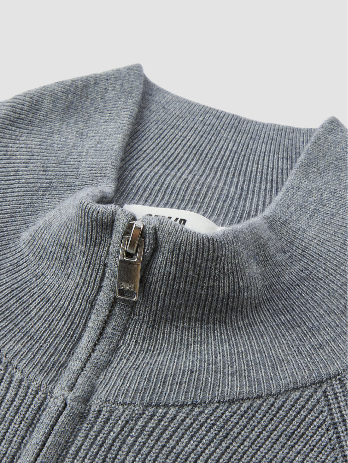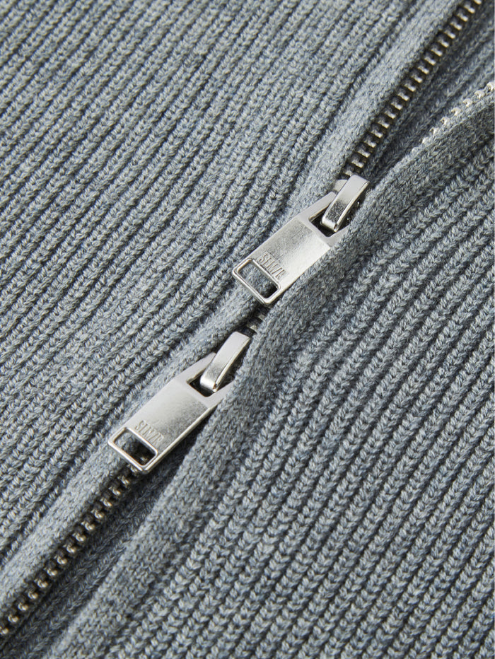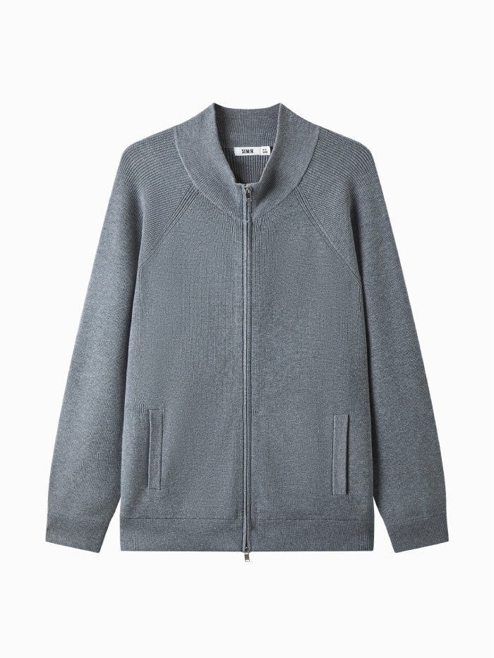 كارديغان محبوك بتفاصيل إغلاق بسحاب أمامي مع نسيج مضلع وجيوب جانبية عملية، قطعة أساسية تمنح إطلالة عصرية مريحة.