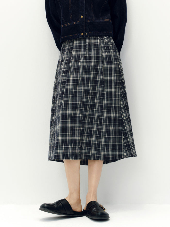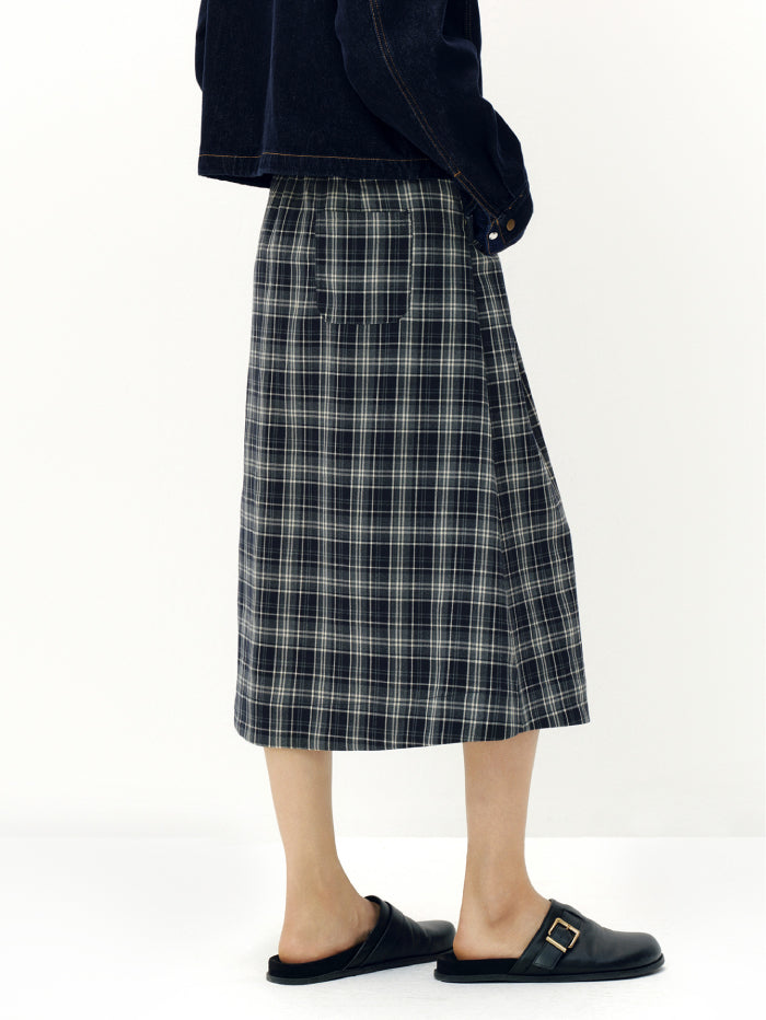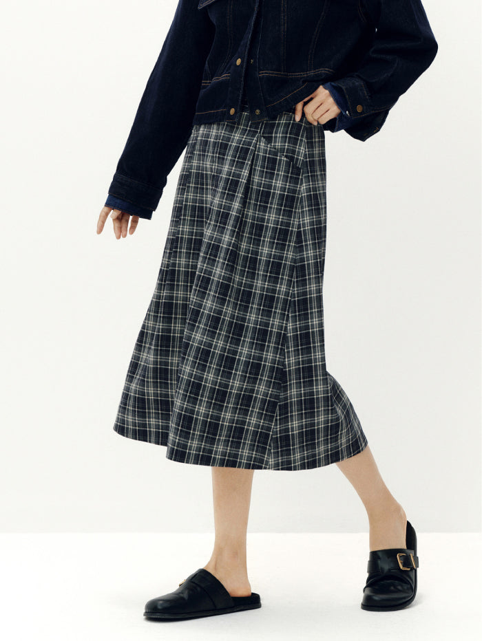 تنورة كاروهات بقصّة A مع جيوب للنساء