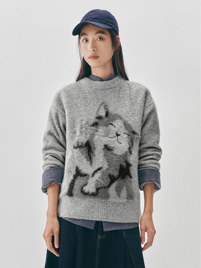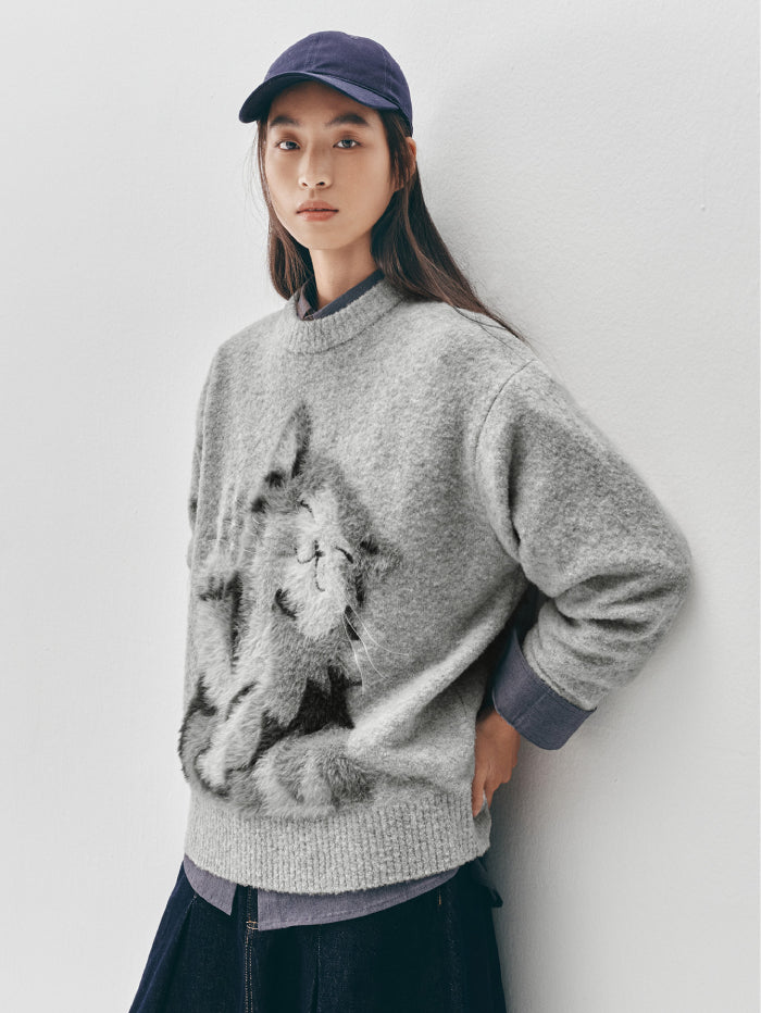 كنزة محبوكة ناعمة بتصميم مريح مع حواف محاكة. مزينة بطبعة أمامية مرحة تضيف لمسة عصرية وكاجوال لإطلالة يومية مميزة.