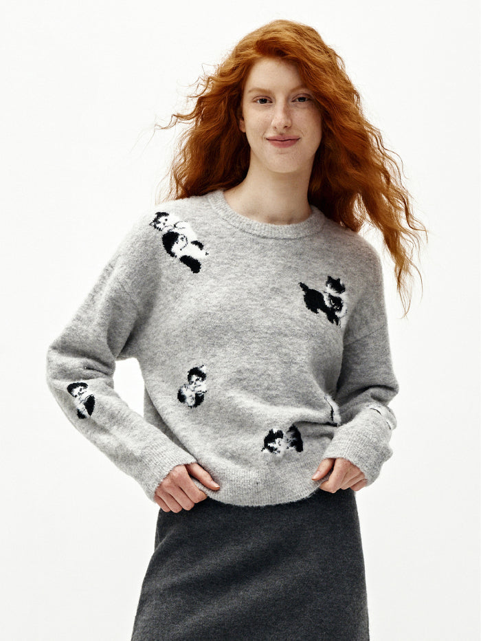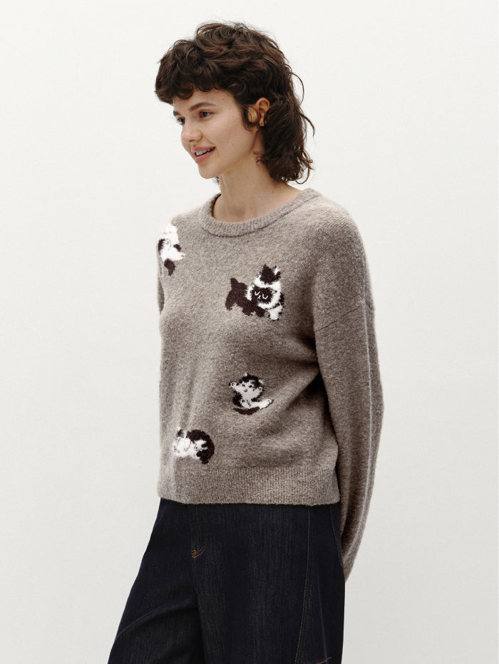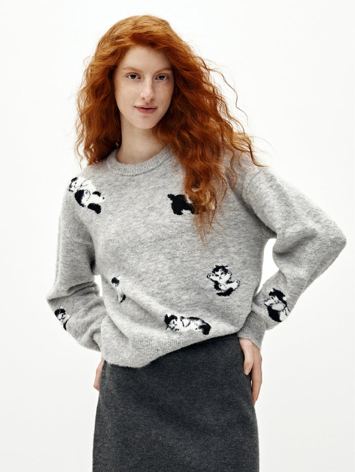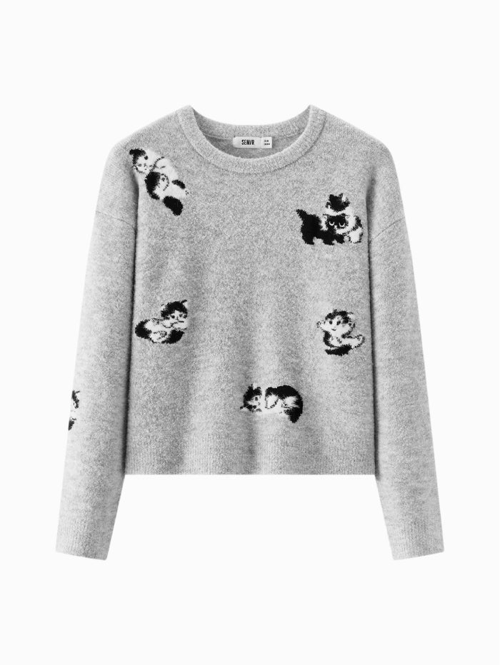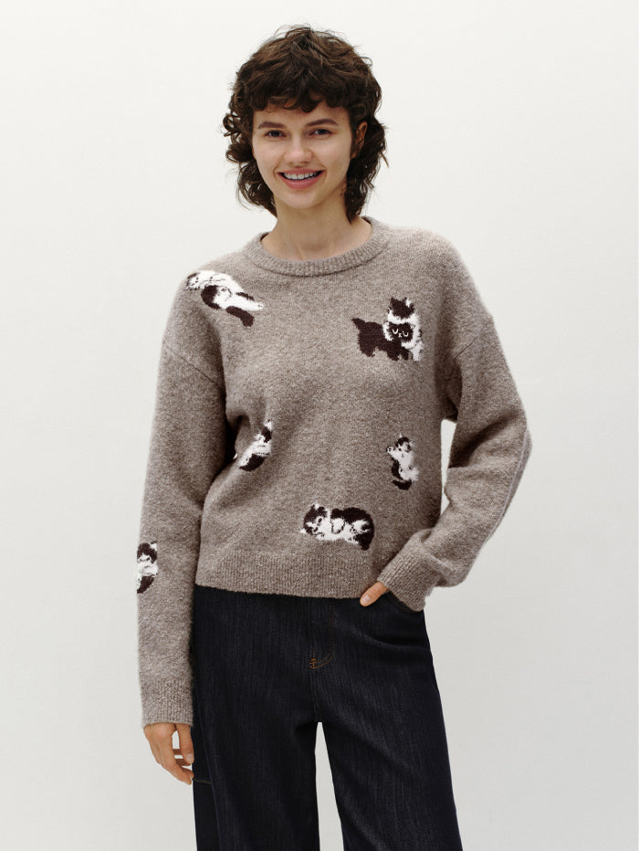 كنزة محبوكة بنقش حيوانات مرحة للنساء