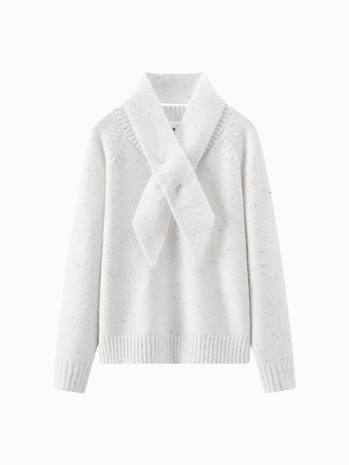 كنزة محبوكة مع وشاح قابل للفصل للنساء