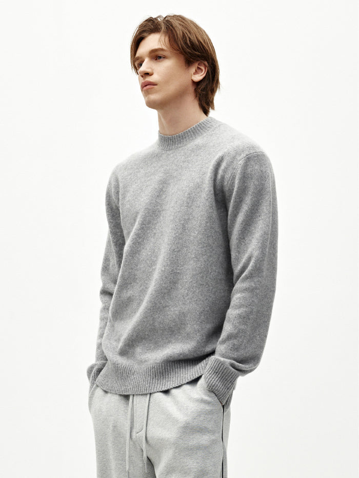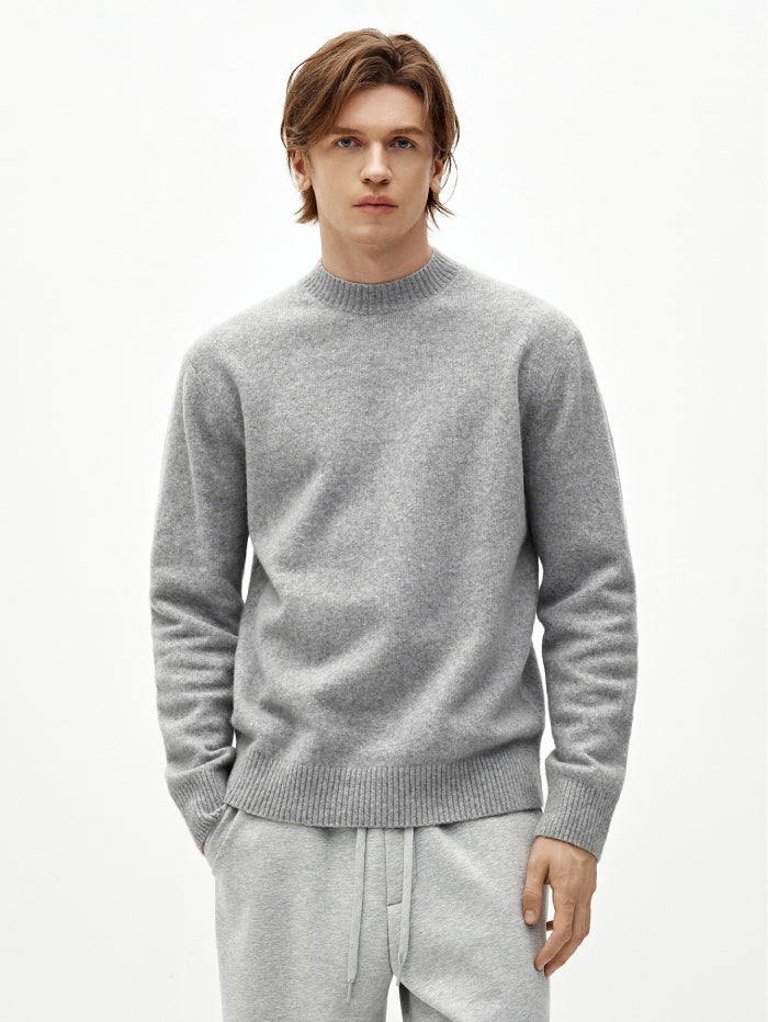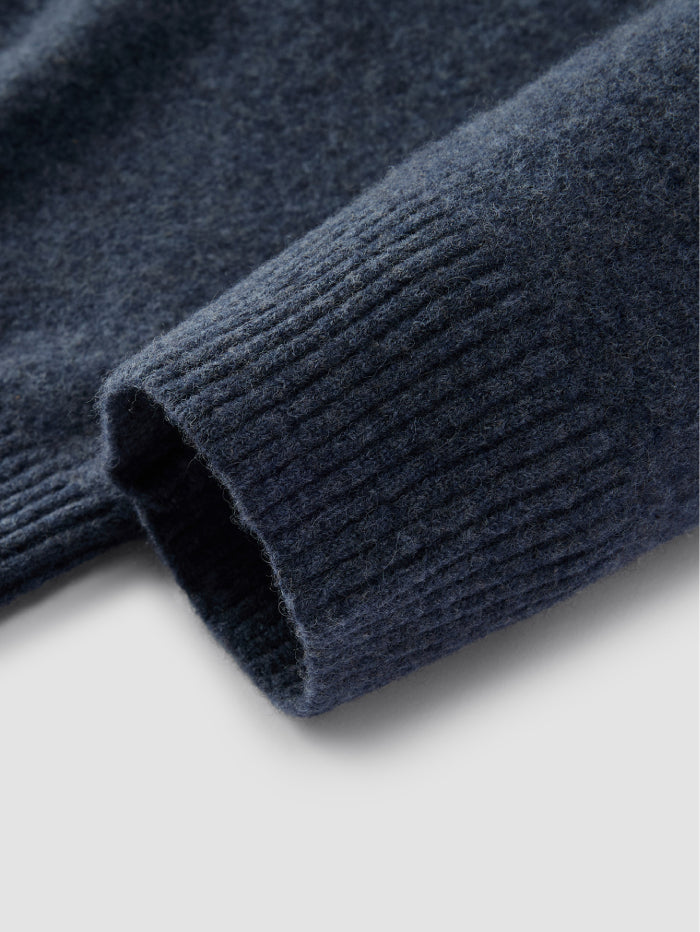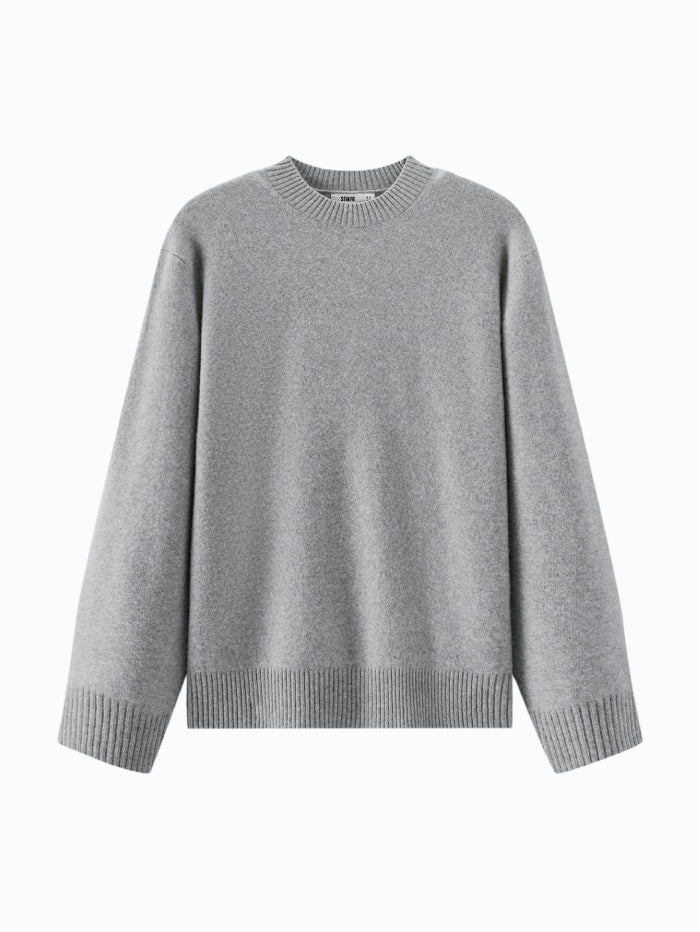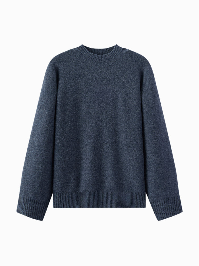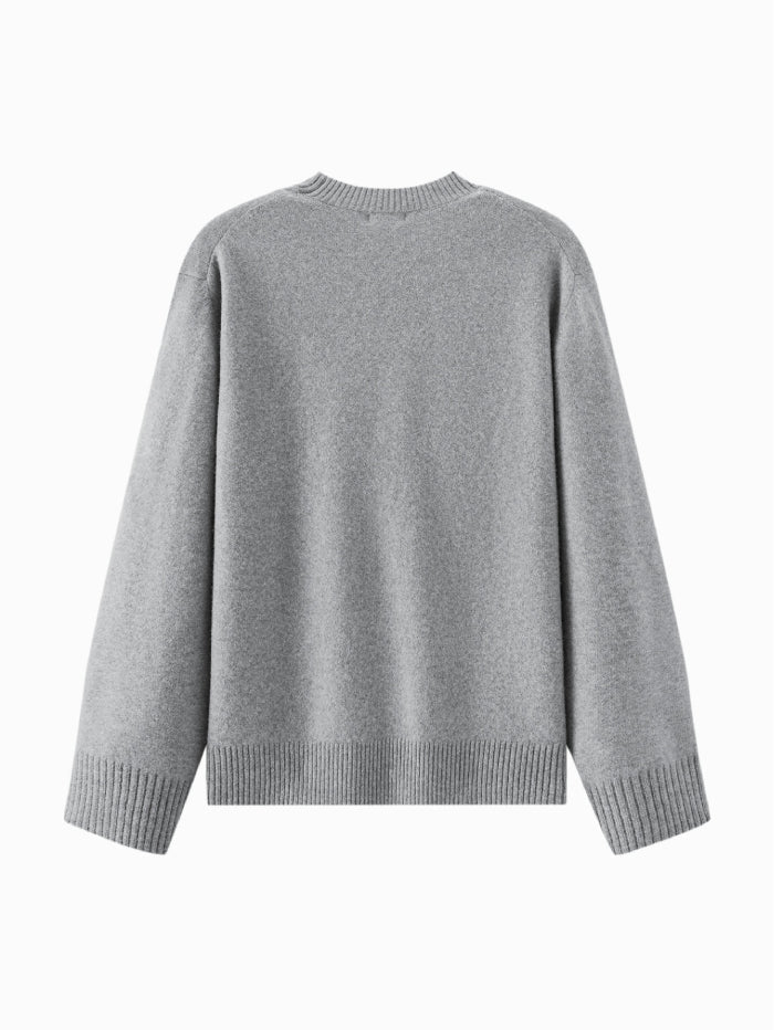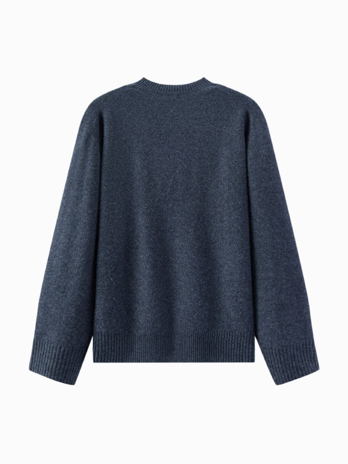 بلوفر محبوك بتصميم بسيط مع ياقة دائرية وتفاصيل حافة متباينة عند الياقة والأكمام. تصميم عملي بأكمام طويلة مناسب للارتداء منفردًا أو للتنسيق مع طبقات أخرى.