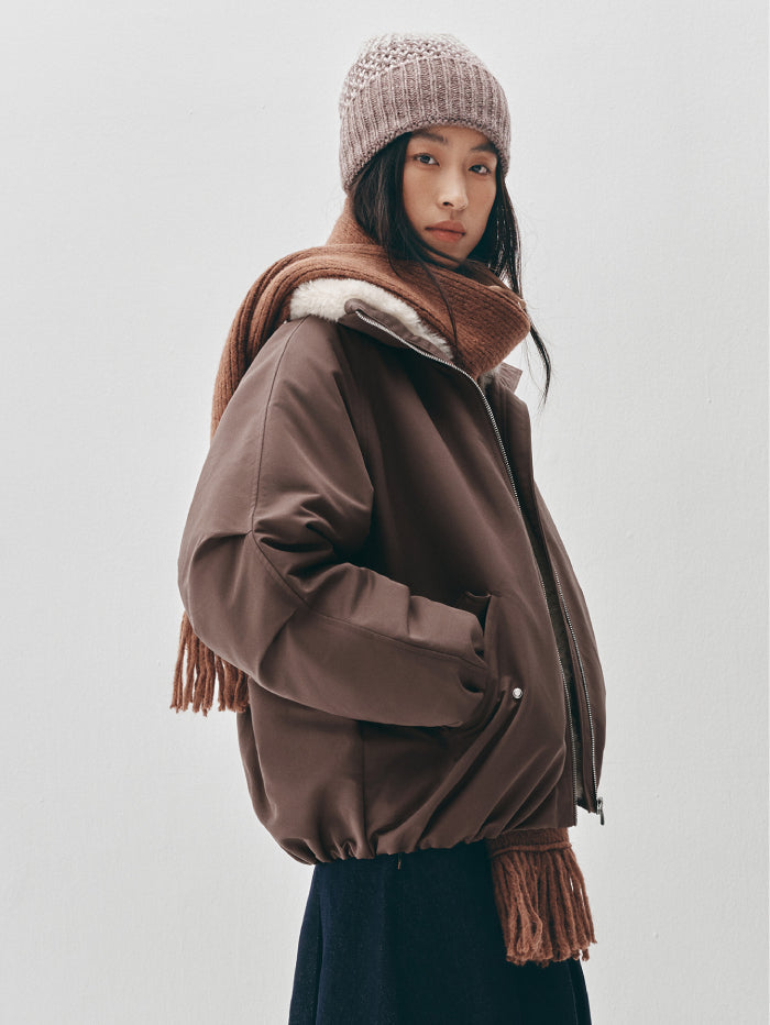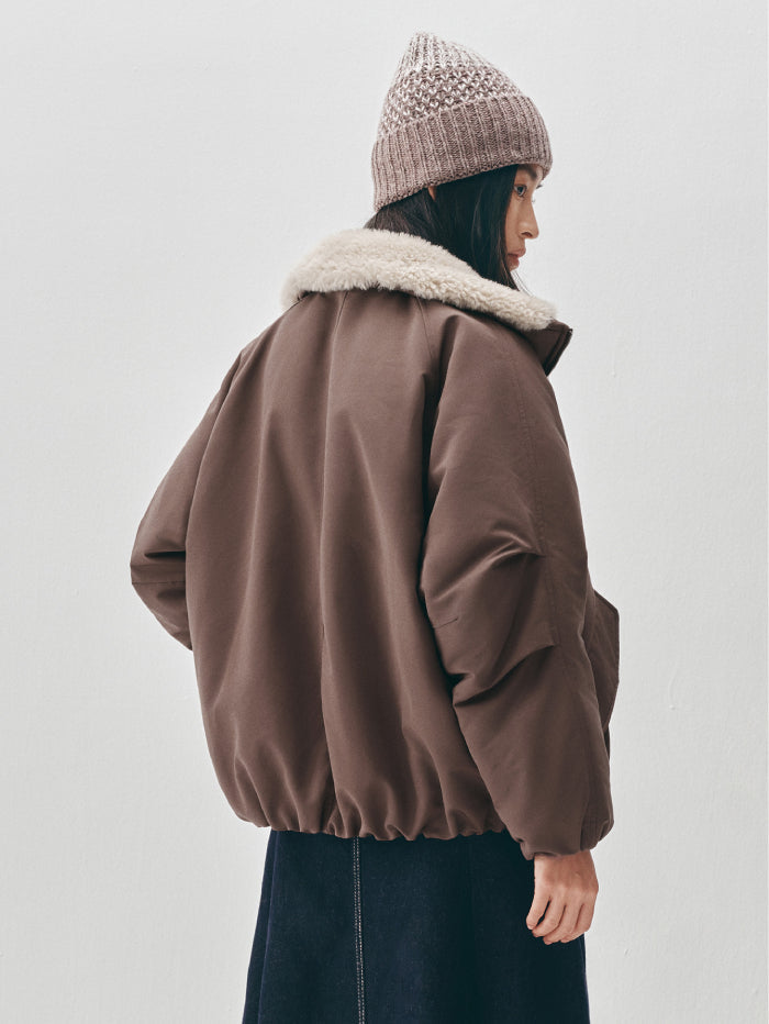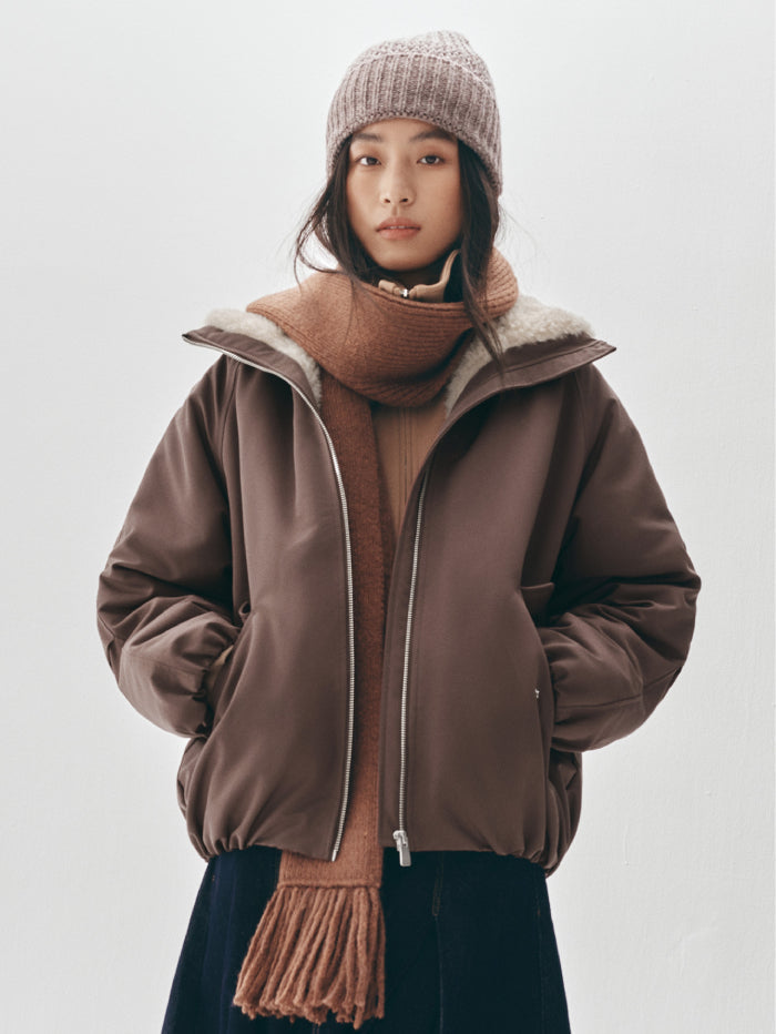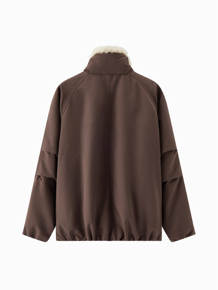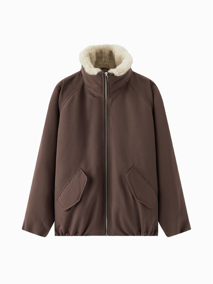 جاكيت عملي قابل للعكس يتميز بطبقة خارجية ناعمة مع جيوب أمامية وأزرار إغلاق، وبطانة داخلية من الفرو الصناعي لتوفير دفء إضافي. مزود بياقة مرتفعة وتصميم متنوع يناسب الإطلالات الكاجوال.