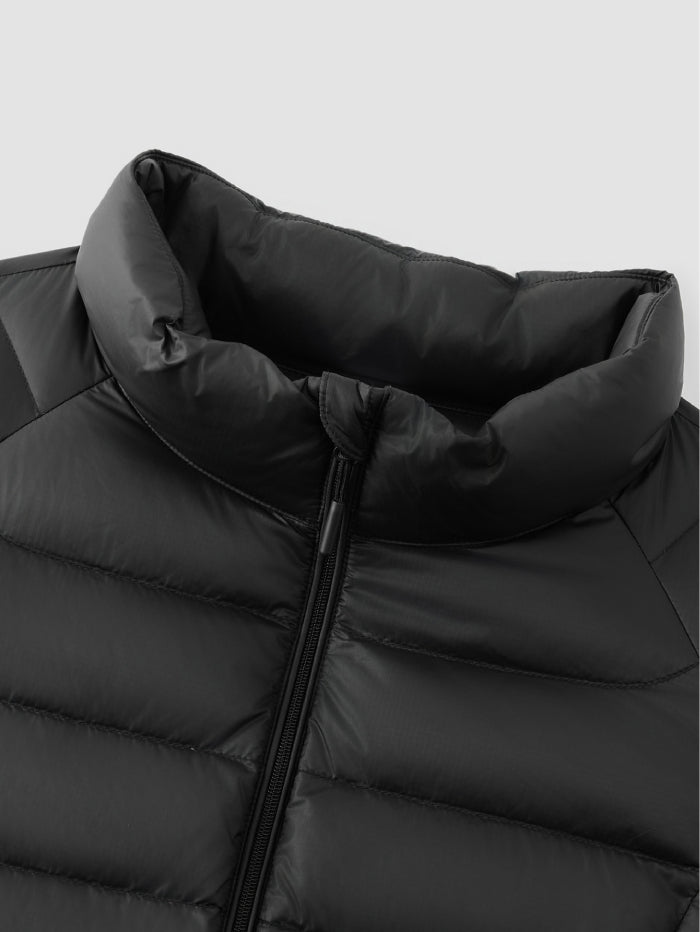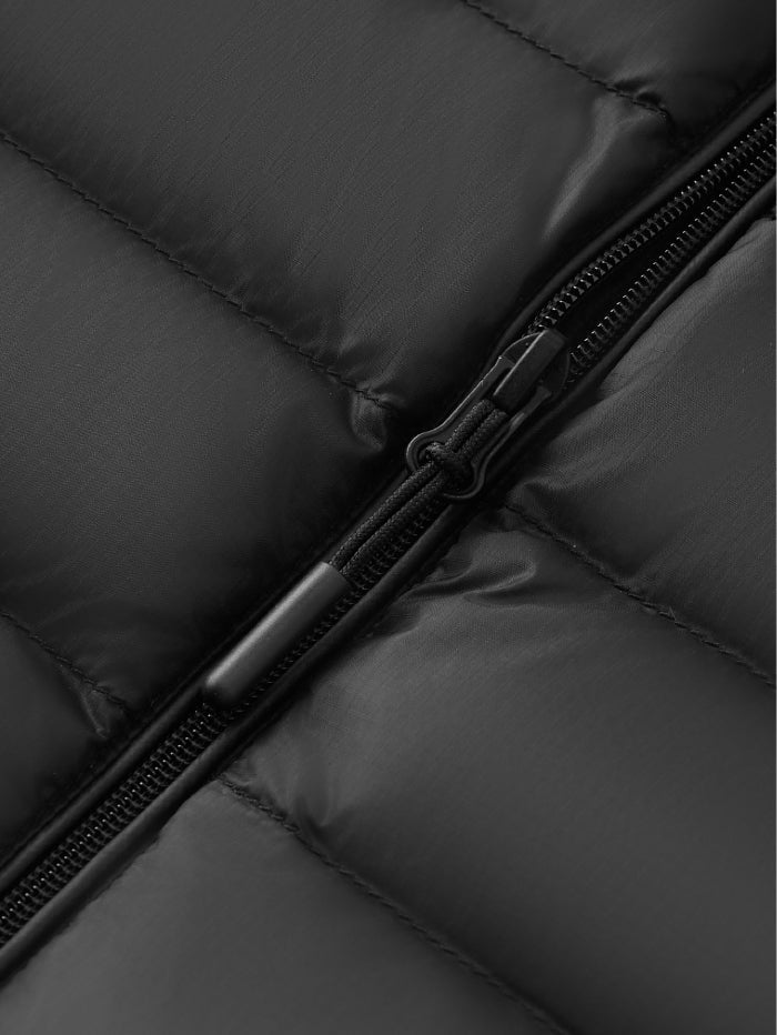 جاكيت مبطن بتصميم مبطن وخفيف الوزن، مزود بسحاب أمامي يمنح دفئًا وراحة في الحركة. قطعة عملية مثالية للارتداء فوق الطبقات في الأجواء الباردة.