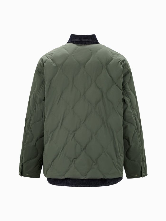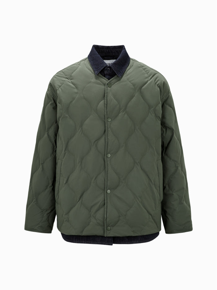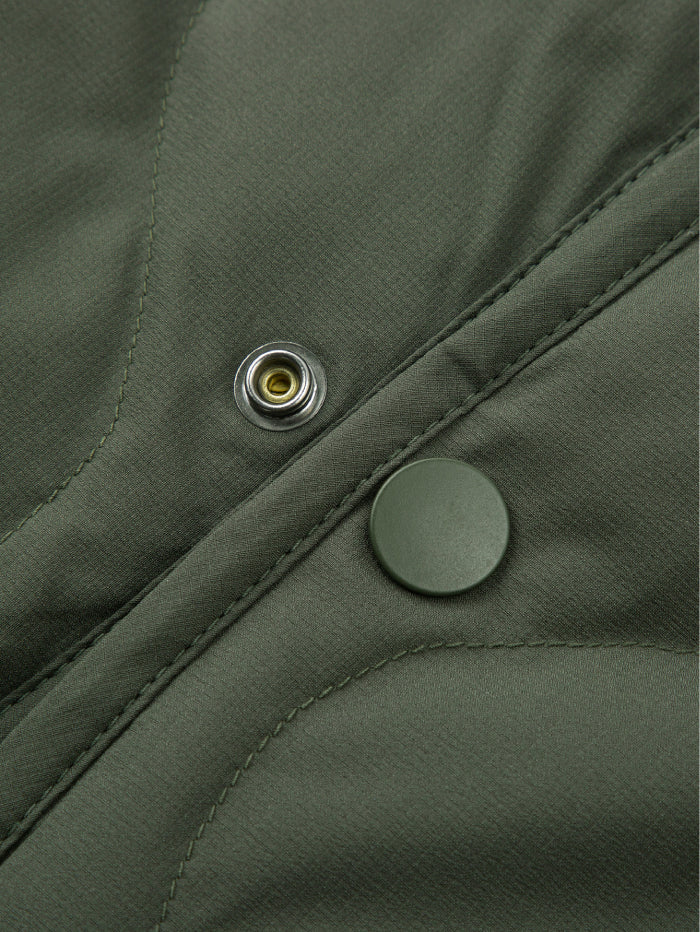 جاكيت مبطن خفيف مزود بأزرار كبس أمامية، يتميز بنمط خياطة بارز يضيف لمسة عصرية. قطعة عملية متعددة الاستخدامات مثالية للارتداء اليومي.