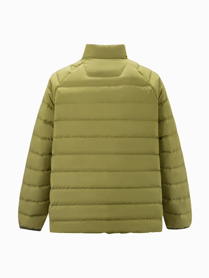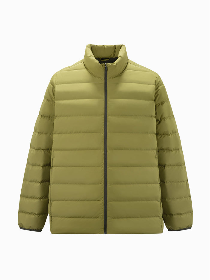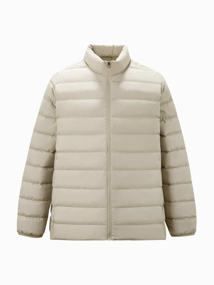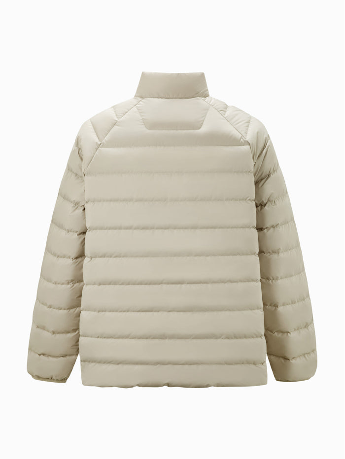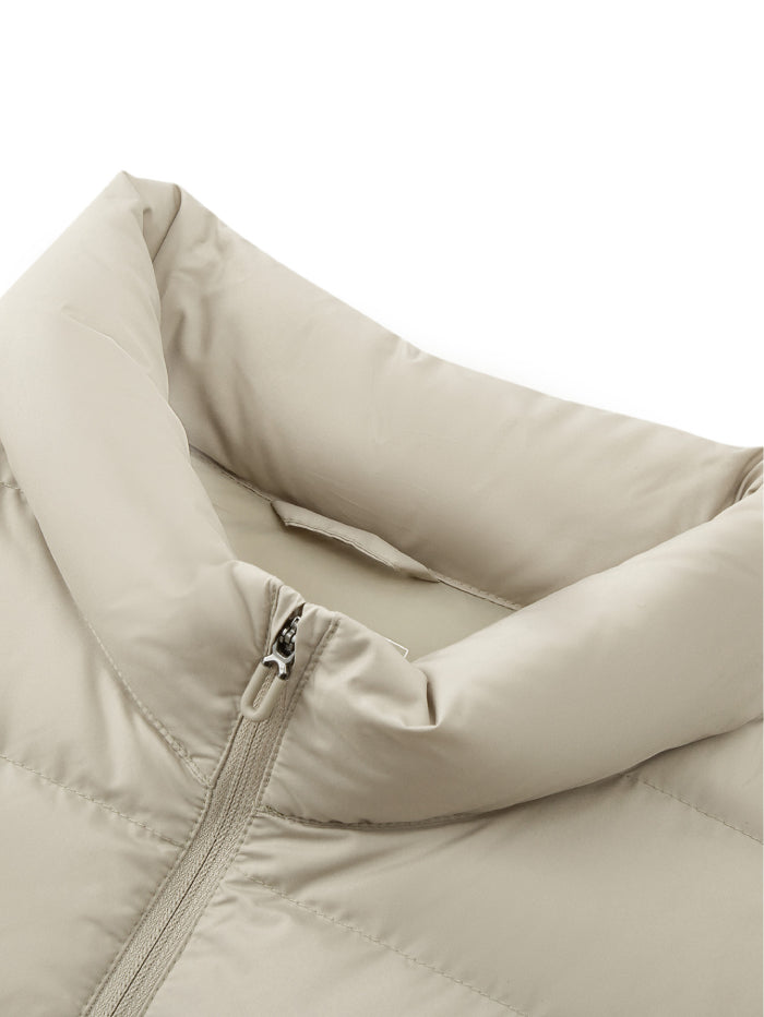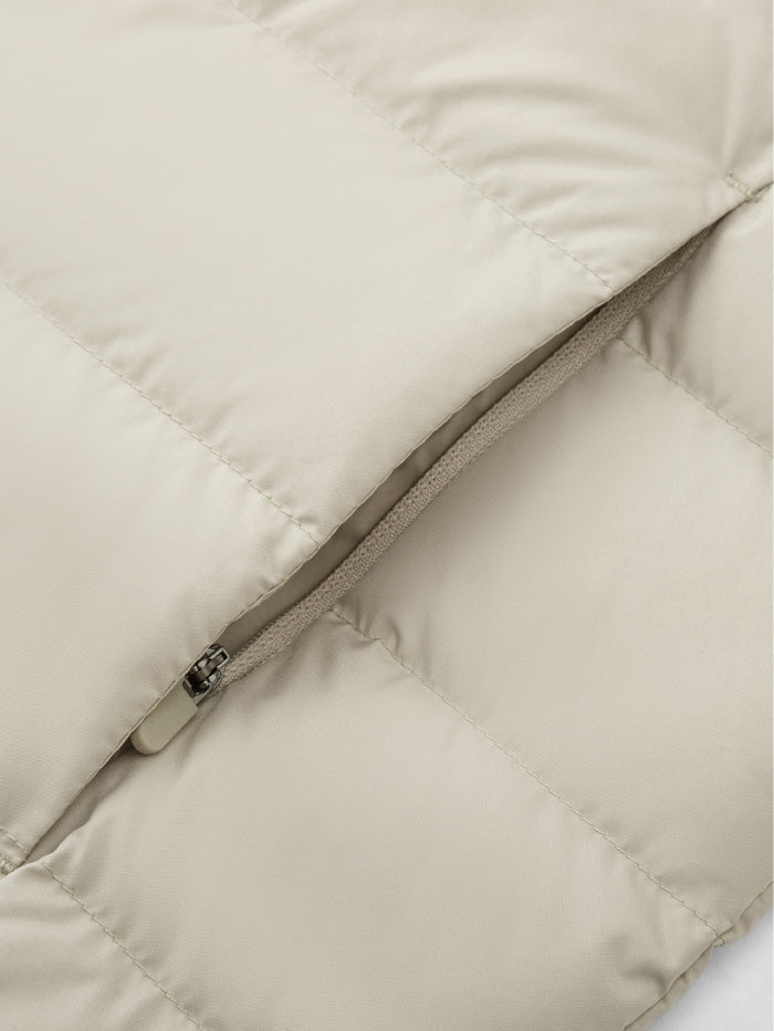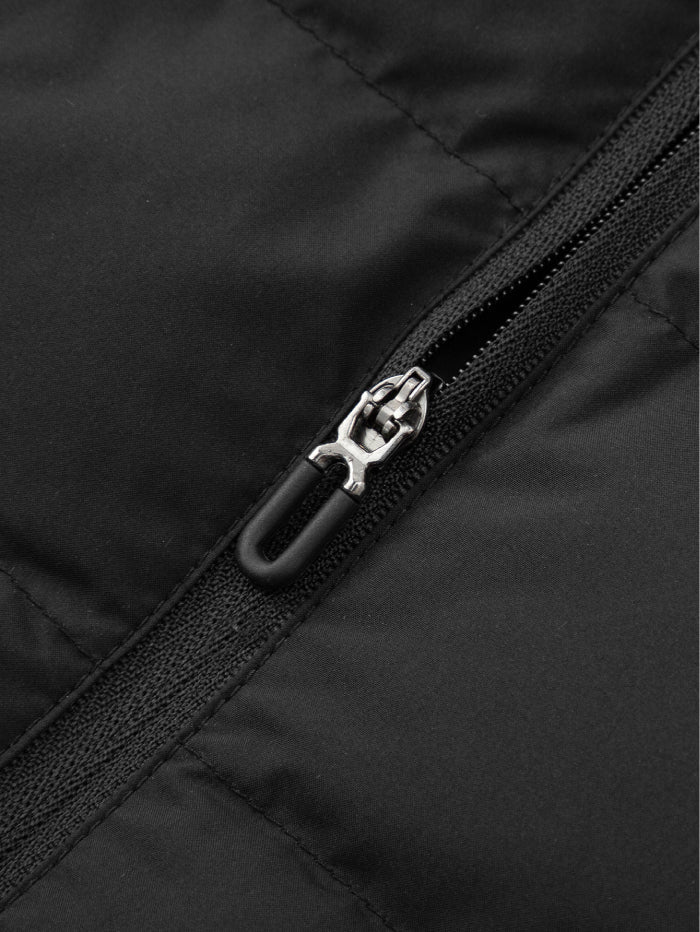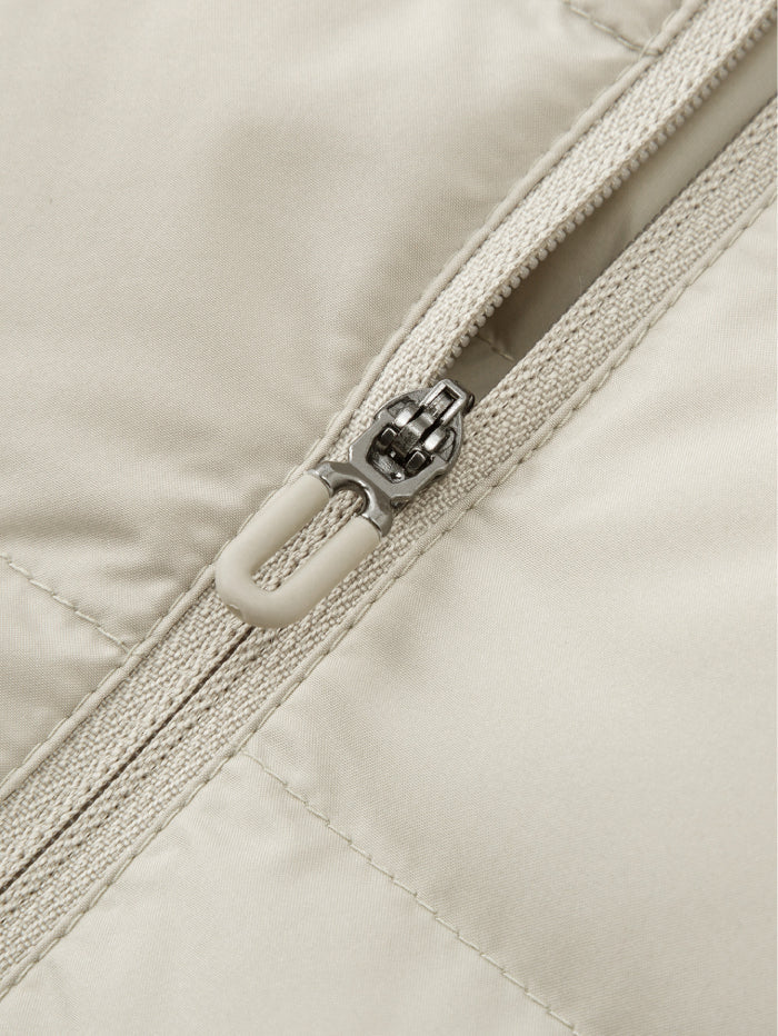 جاكيت مبطن دافئ يتميز بياقة عالية ونمط خياطة أفقية. خفيف الوزن ويوفر عزلًا جيدًا، مثالي للأيام الباردة ويسهل تنسيقه مع مختلف الإطلالات