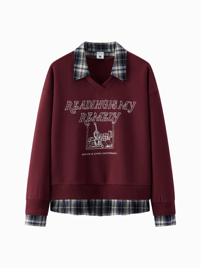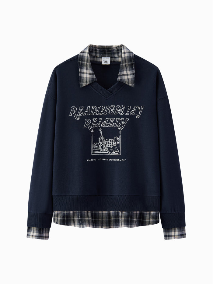 سويت شيرت بطبقات مع ياقة قميص للنساء