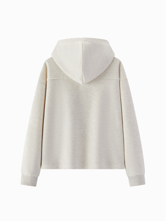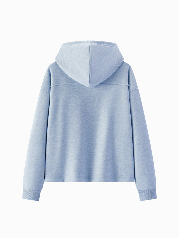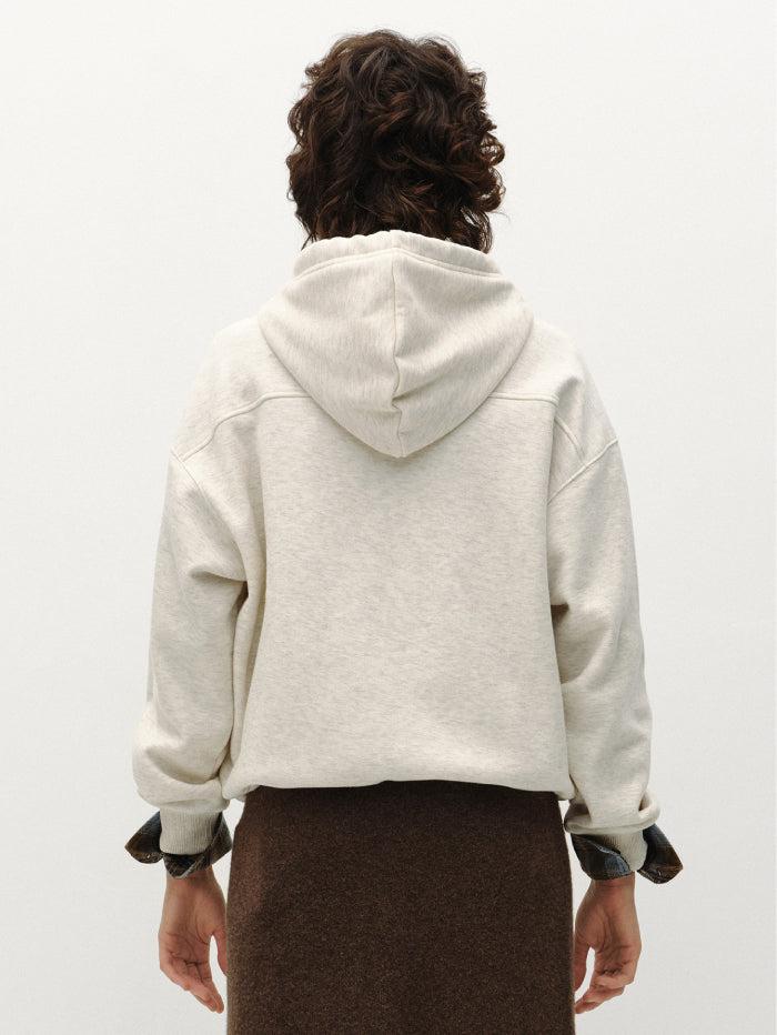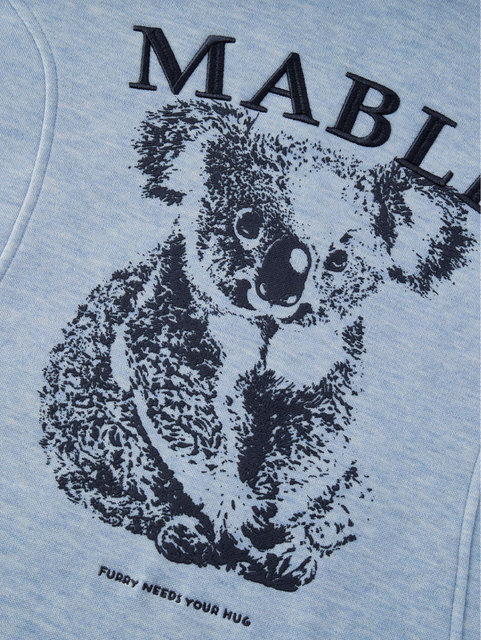 سويت شيرت كاجوال بتصميم بطبقات مع ياقة وأطراف أكمام وحافة سفلية بنقشة مربعات. مزين بطباعة بارزة مع شعار ورسمة في الأمام، ليمنح مظهراً عصرياً مريحاً ومثالياً للإطلالات اليومية.