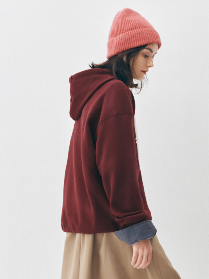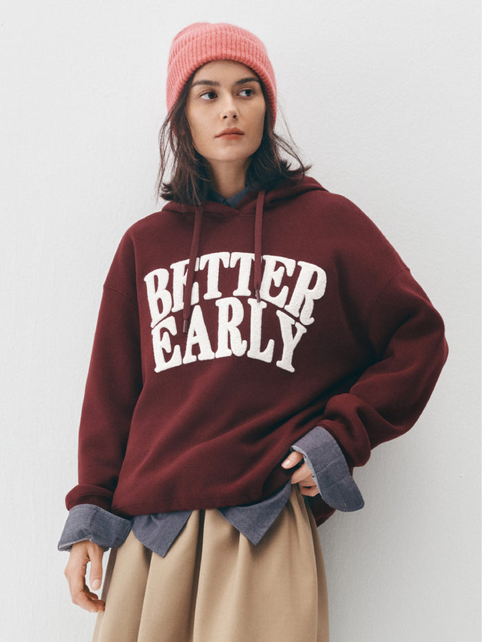هودي كاجوال بقبعة قابلة للتعديل بحبال وأكمام بحافة مطاطية. يتميز بطباعة رسومية بارزة في الأمام، ليمنح إطلالة عصرية مريحة مثالية للاستخدام اليومي.