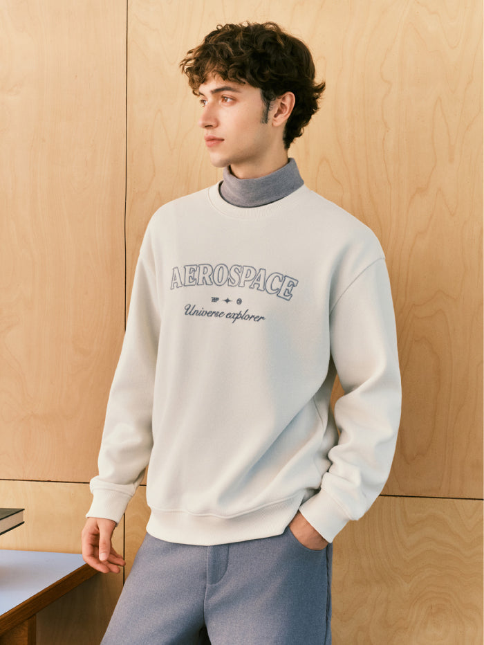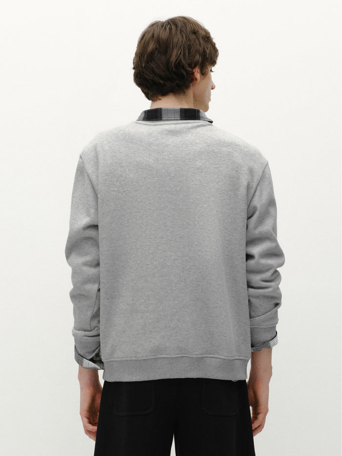 سويت شيرت كلاسيكي بملمس محبوك مضلع مع ياقة دائرية وأكمام طويلة. يتميز بتفاصيل حافة بطبقة مزدوجة لإطلالة كاجوال وعملية تناسب الاستخدام اليومي.
