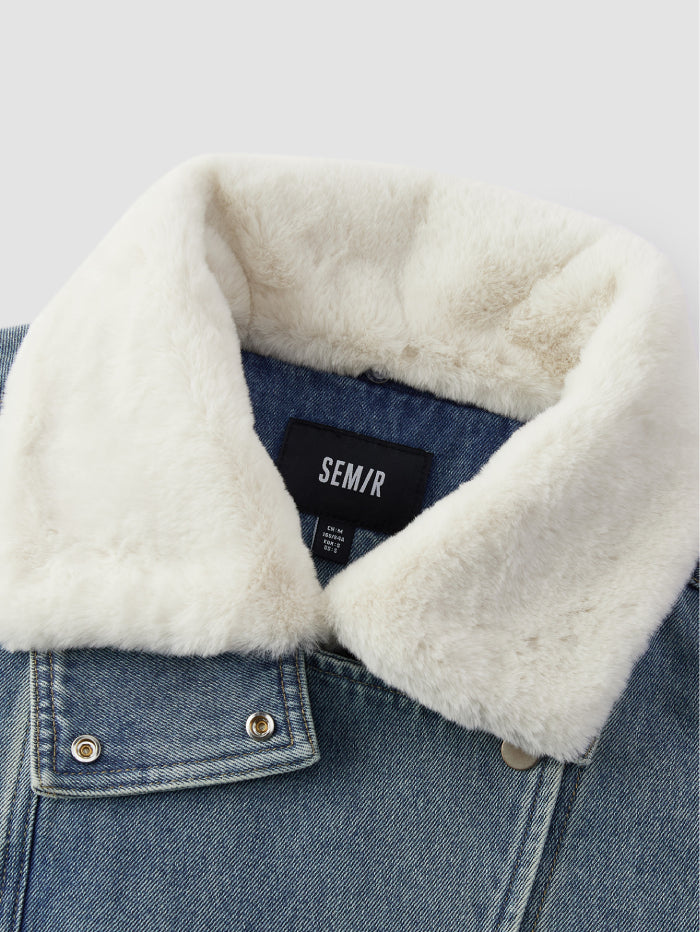 جاكيت دنيم بياقة فرو صناعي للنساء